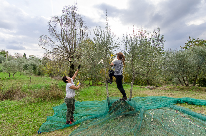 Nelle foto potete vedere come raccogliamo le olive, esclusivamente dall’albero, con mezzi manuali, nel momento della maturazione giusta, cercando di non rovinare le olive, ne gli alberi, quasi pettinando i rami e le foglie, per procurare il minor stress agli alberi e mantenere intatte le olive.